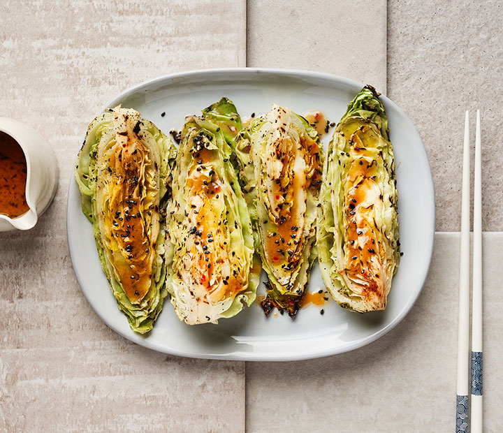 - Place the sweetheart cabbage with a little oil into a hot pan with a lid.