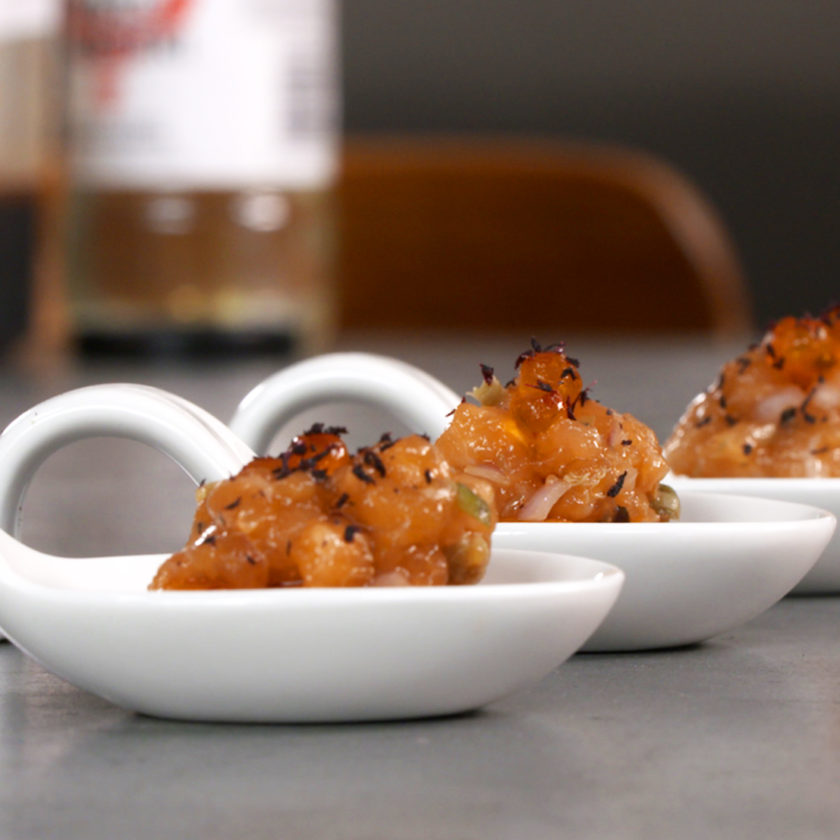 Honteri Grilled Salmon Skin & Salmon Tartare Bites Recipe