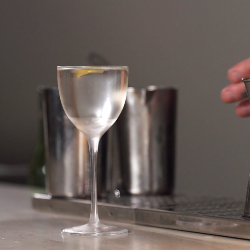 - Add 35ml Vodka (Rich uses Haku) & Dry Vermouth (Rich uses Dolin) to a chilled martini glass, and finish with 15ml of the infused Honteri.